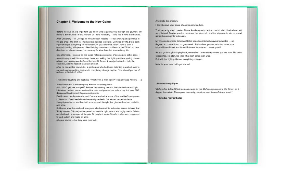 Absolutely. This playbook is built for career transitions. Whether you're injured, retired, or just looking for a change, the principles of discipline, resilience, and work ethic translate directly to tech sales.
