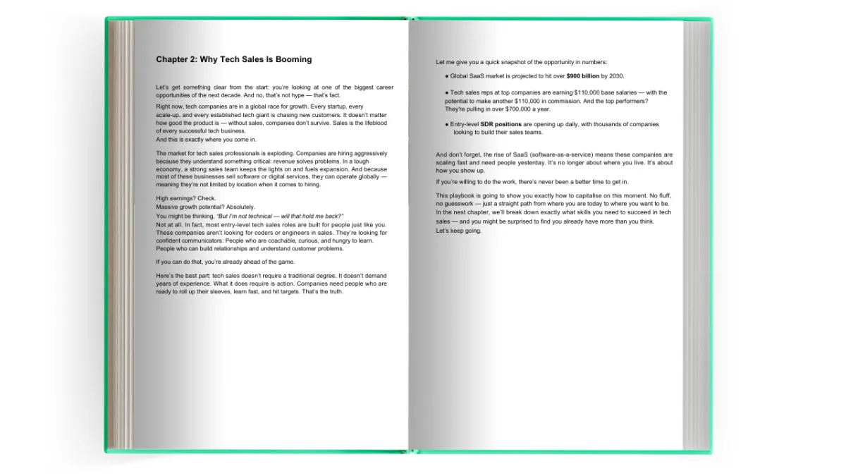 Tech sales is one of the few high-paying careers where your background matters less than your hustle. Many successful SDRs and BDRs don't have degrees. We show you how to position yourself based on results and character, not credentials.